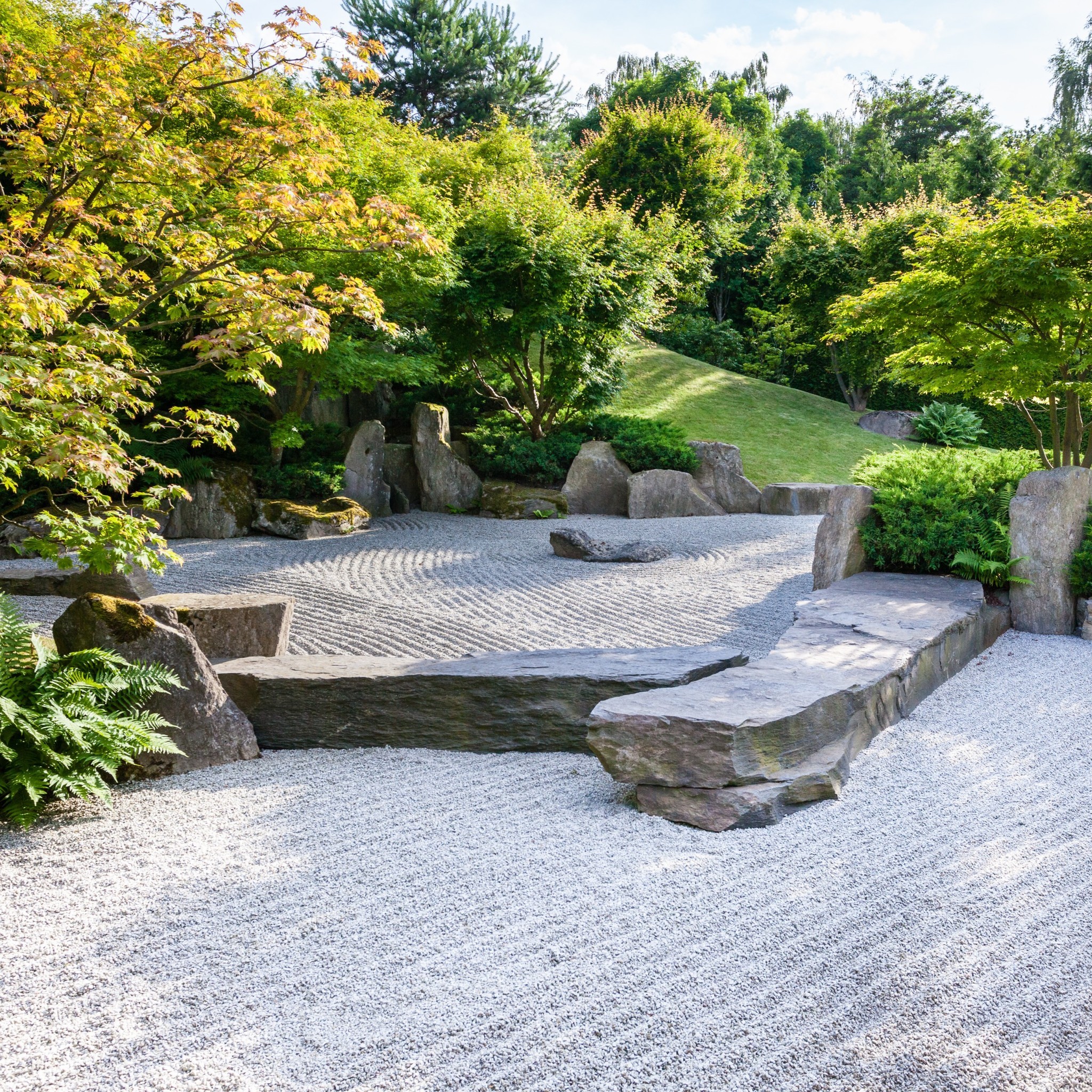 A Zen garden is an effortless way to make your yard stand out. When you design this peaceful and visually stunning oasis, make white stones a central element. Use fine white gravel or smooth pebbles as the main ground cover for your Zen garden.